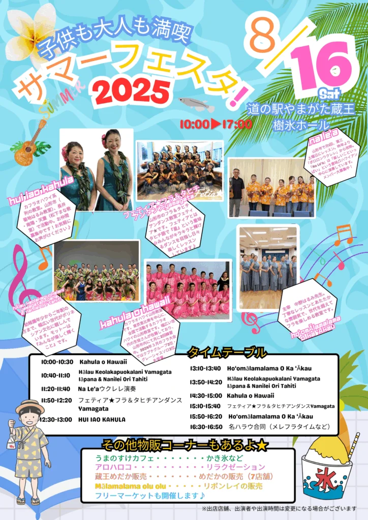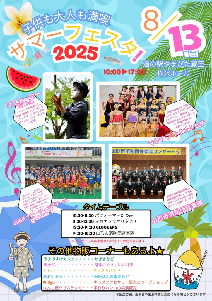 『子供も大人も満喫 サマーフェスタ!2025』開催決定 地元山形で活動している様々なジャンルの団体様によるスペシャルステージを開催!! 【日にち】2025/8/13(水)~16(土)
