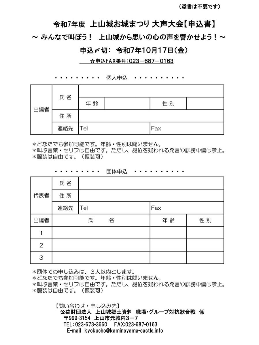 上山城お城祭り 大声大会 開催事務局 |