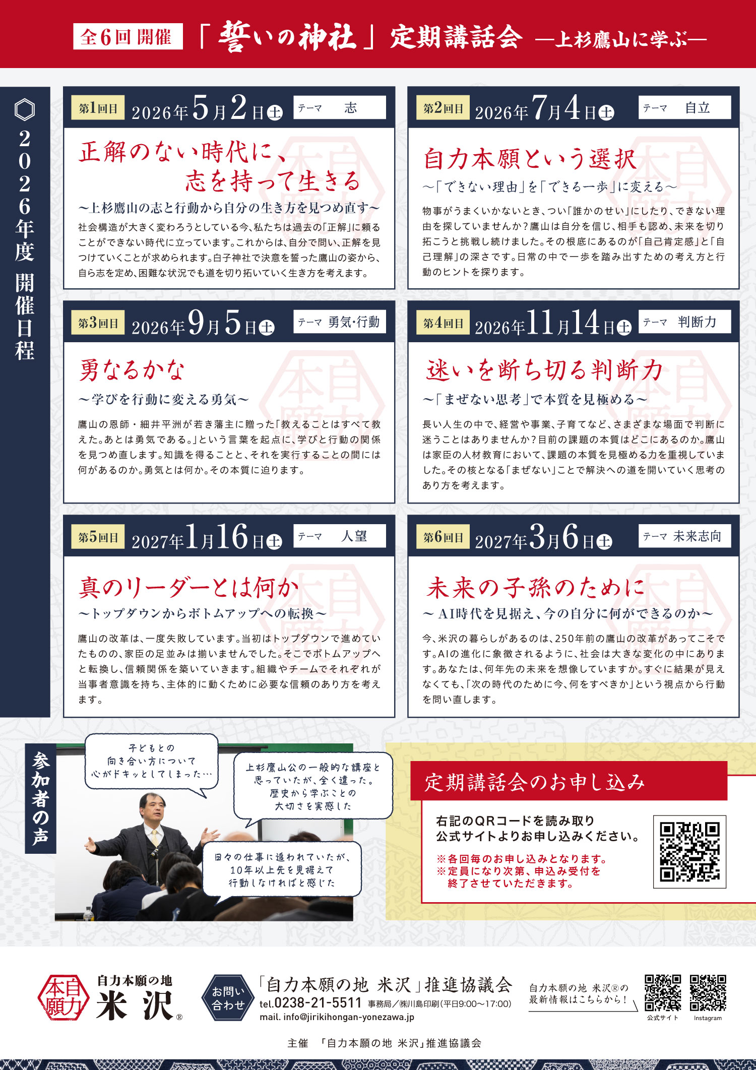 「誓いの神社」定期講話会 ―上杉鷹山に学ぶ ―