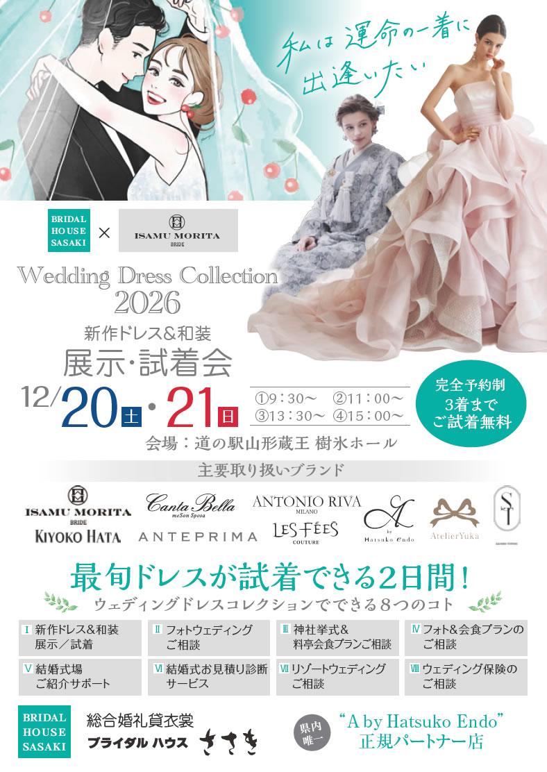 2025年12月20日(土)・21日(日)は「道の駅 やまがた」を会場に、新作ドレス・和装の展示・試着会を開催いたします。可愛らしいお姫様ドレスから、シンプルな […]