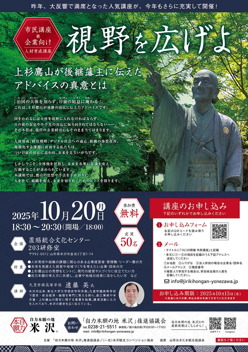 10/19米沢鷹山大学『なせばなるクラス』 をはじめます】社会教育文化課です。(株)CPB代表の倉成英俊さんを総合プロデューサーにお迎えして、米沢鷹山大学のメイ […]