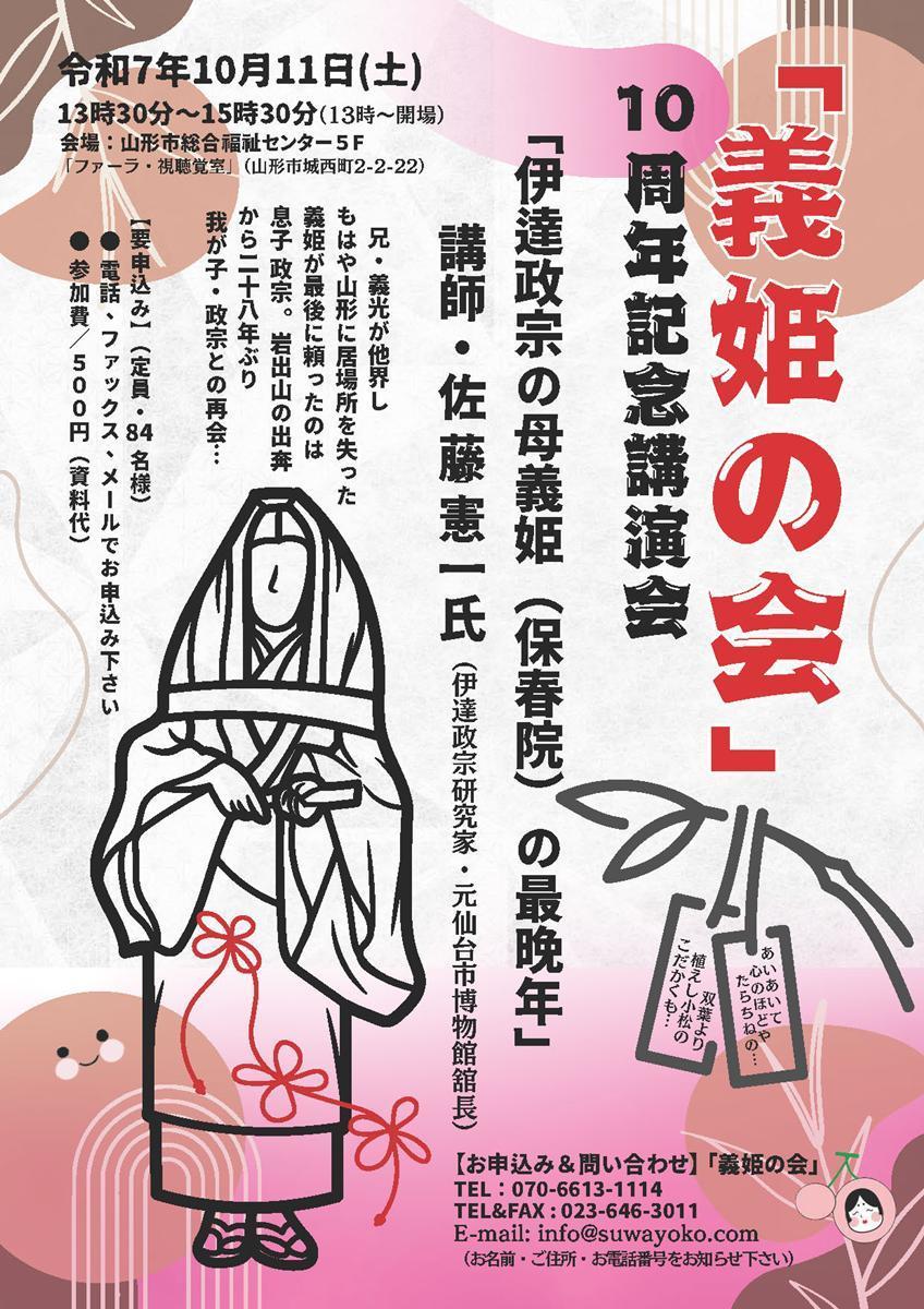 「義姫の会」(よしひめのかい)は山形市の歴史をとおして郷土愛を育みつつ、戦国時代の山形城に生まれ稀代の活躍をした最上家・義姫の顕彰活動を展開して参りましたが、お […]