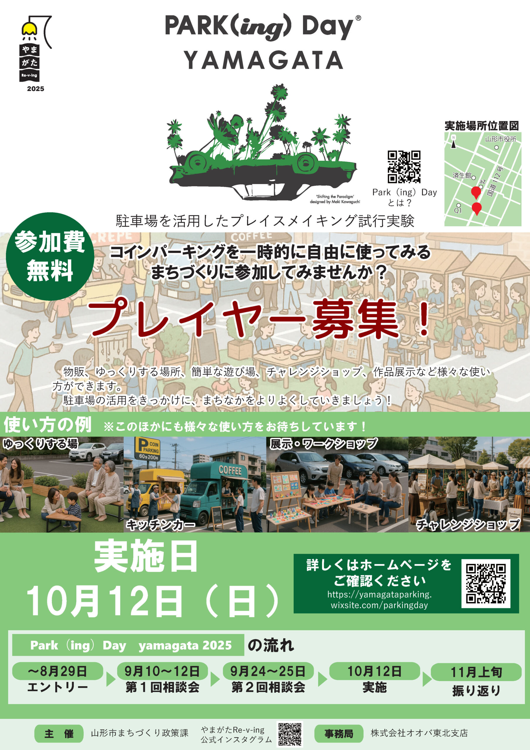コインパーキングを一時的に自由に使ってみるまちづくりに参加してみませんか?現在プレイヤーを募集中です!物販、ゆっくりする場所、簡単な遊び場、チャレンジショップ、 […]