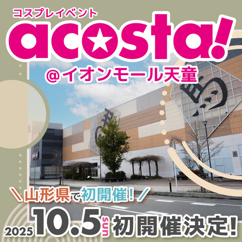 全国各地で開催しているコスプレイベント「acosta!」がイオンモール天童で“山形県初開催”!コスプレでのイオンモール天童を撮影・交流で楽しもう♪カメラマン・一 […]